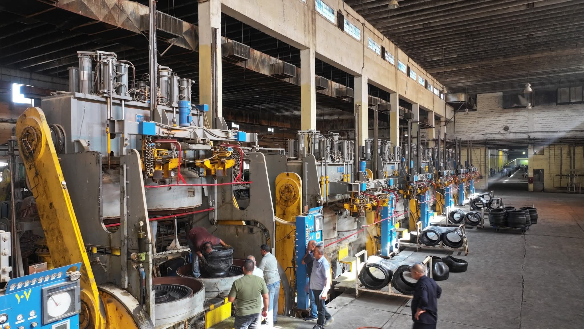 وأوضح ان المصنع يواصل إنتاج إطارات بأحجام ١٢٠٠/٢٠ و ١٢٠٠/٢٤ التي تحظى بطلب مُتزايد من دوائر الدولة والسوق المحلي إلى جانب مُنتجات مطاطية بمختلف الأشكال والأنواع والأحجام لتلبية احتياجات معامل السمنت ودوائر الكهرباء والقطاع الخاص مثل الواشرات والدايفرامات بالإضافة إلى إنتاج الإطار الزراعي والذي يُستخدم في منظومات الري المحورية الحديثة، مؤكداً أن المصنع حاصل على شهادات من الجهاز المركزي للتقييس والسيطرة النوعية بمطابقة كافة منتجاته للمواصفات القياسية والمعايير المعتمدة رغم تحديات تقادُم المكائن والتي تم صيانتها بجهود استثنائية لكوادر المصنع.