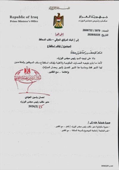 تم التأكيد على أن التحديات التي تواجه شعبنا تتطلب موقفا موحداً من القوى الوطنية للحفاظ على أمن واستقرار البلاد في ظل التوترات الإقليمية المستمرة ودعم إجراءات الحكومة وخطواتها في تعزيز دور العراق المحوري في تحقيق الأمن والسلم الدوليين