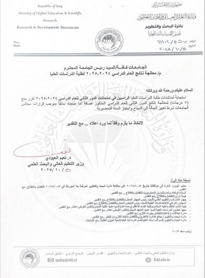 وزير التعليم يقرر منح 5 درجات لطلبة الدراسات العليا الراسبين بالدور الثاني للعام الدراسي 2024 - 2025