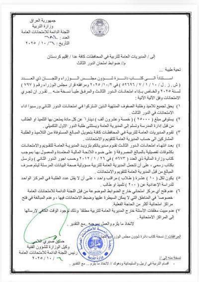 وزارة التربية تصدر ضوابط وآلية أداء امتحانات الدور الثالث للمراحل الدراسية المنتهية